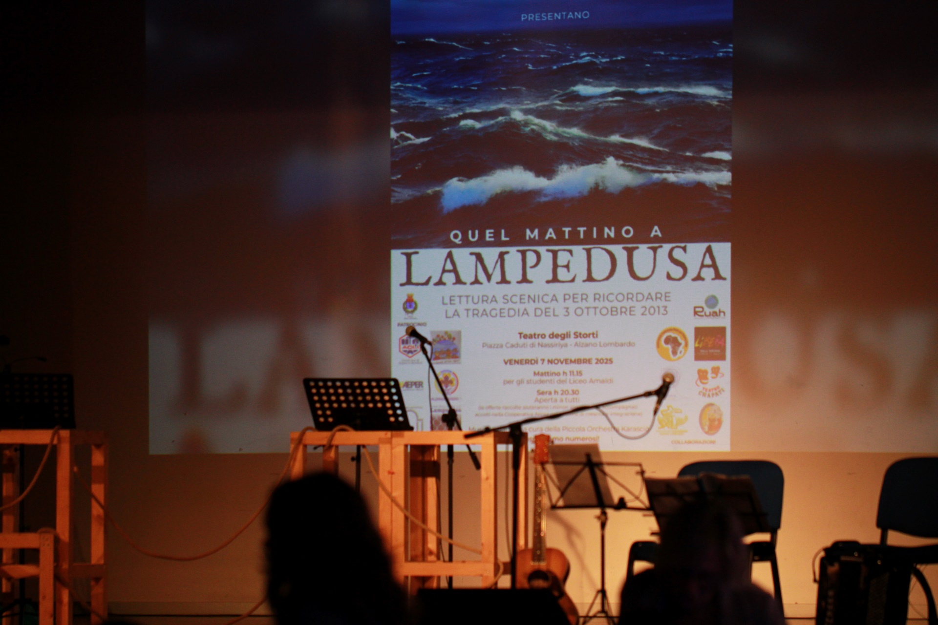 Venerdì 7 novembre 2025 presso il Teatro degli Storti ad Alzano Lombardo si è tenuta la lettura scenica “Quel mattino a Lampedusa”, alla cui rappresentazione hanno collaborato alcuni studenti del Liceo Amaldi.