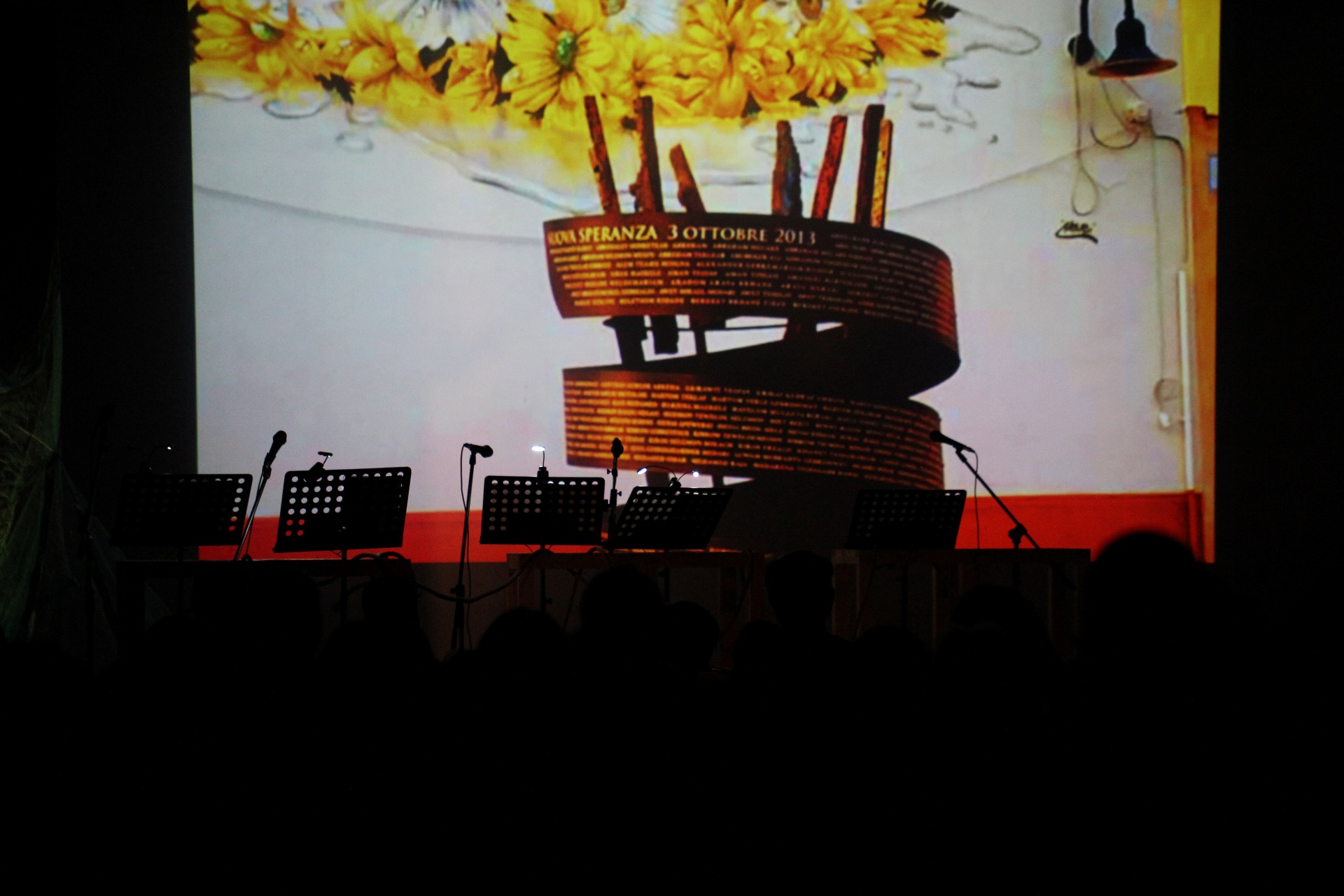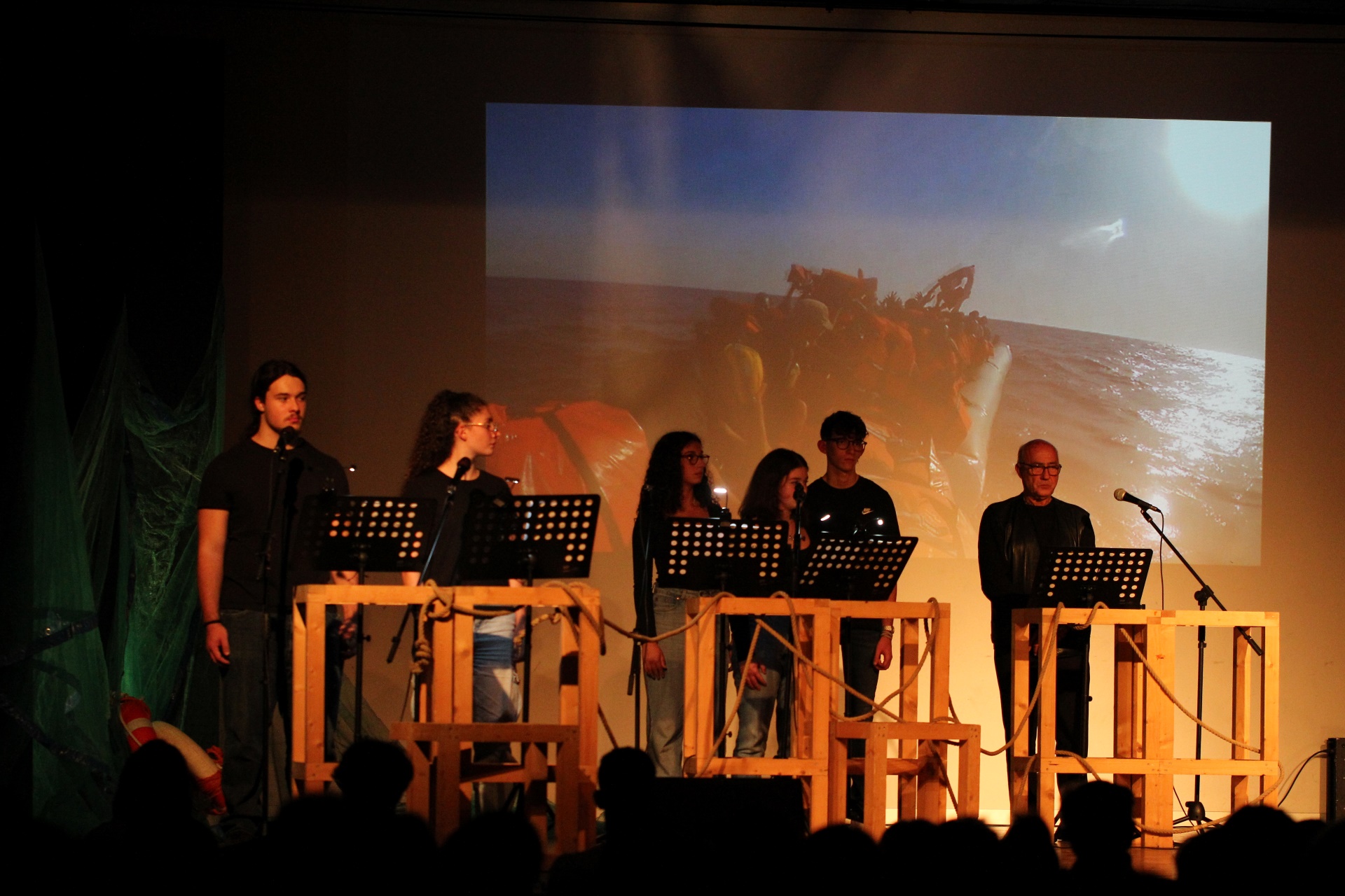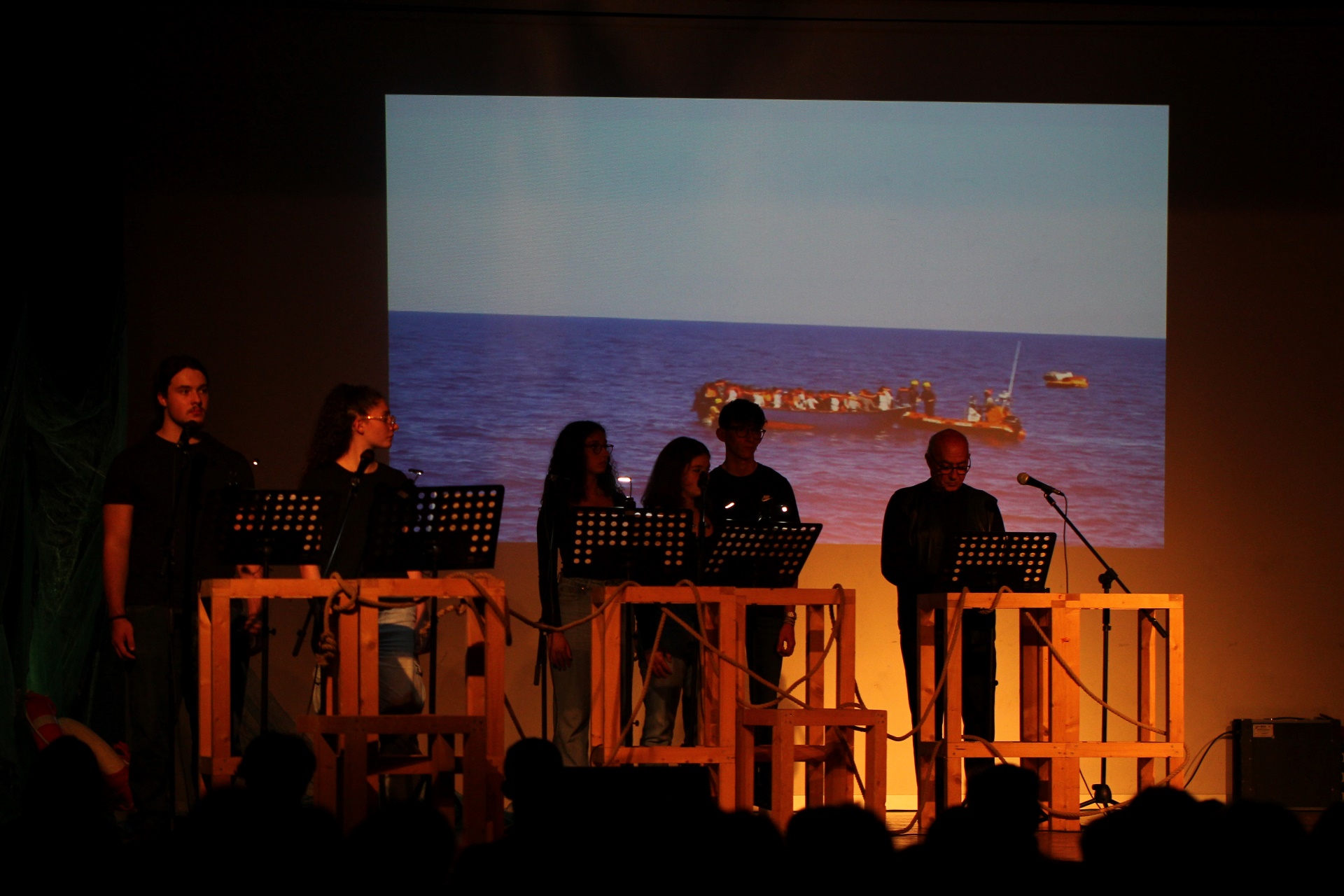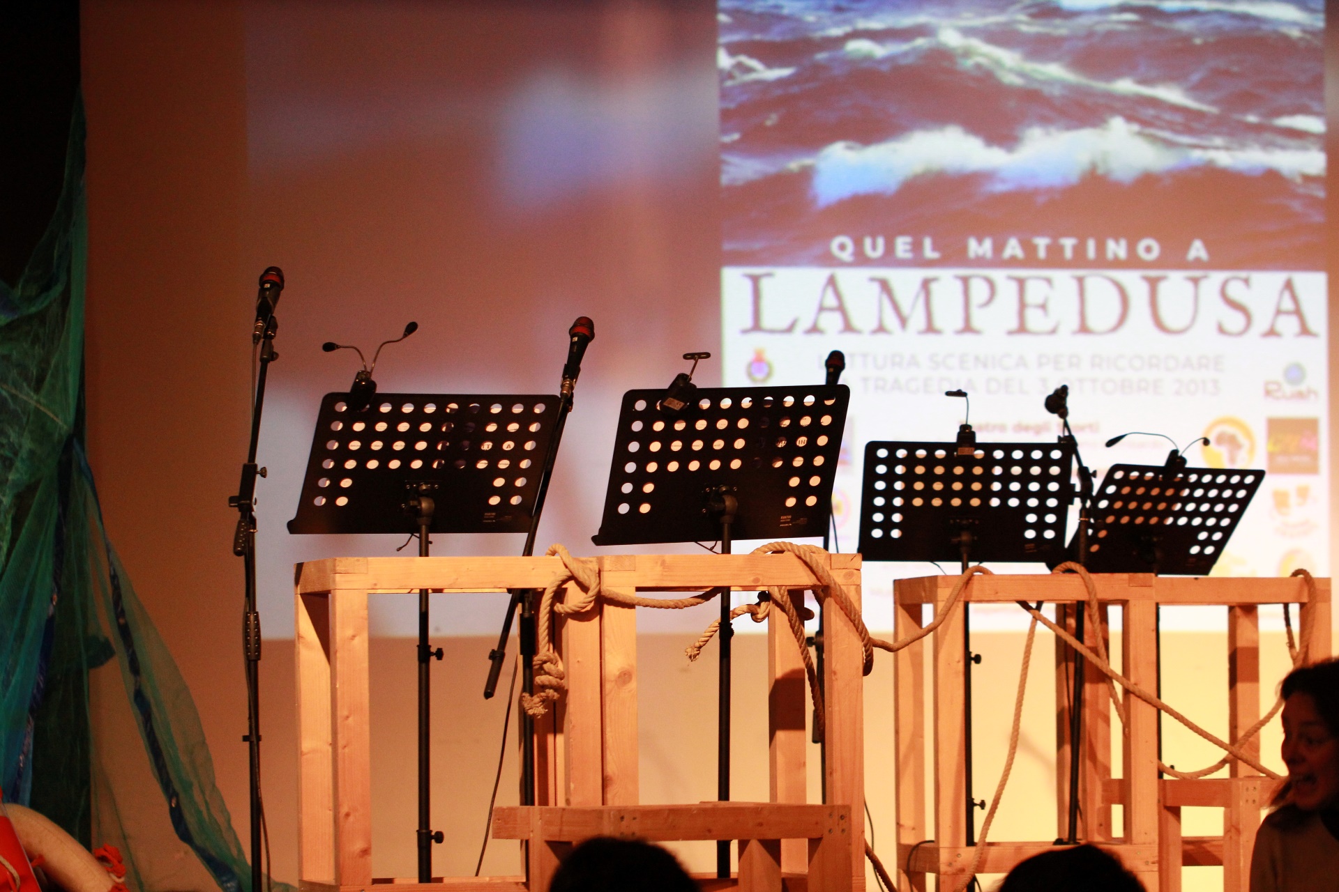 Lettura scenica con musica, largamente basata sulle testimonianze dei profughi e dei soccorritori coinvolti nel tragico evento accaduto il 3 ottobre 2013 a Lampedusa, la rappresentazione è nata su proposta della Comunità del Pane diffusa e con il sostegno e la collaborazione di numerose associazioni del territorio che si occupano a vario titolo dell’accoglienza e inclusione degli stranieri coinvolti nei processi migratori.